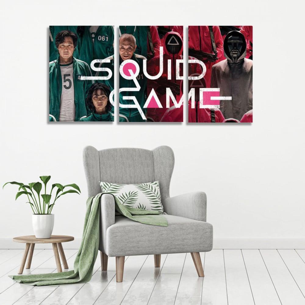 ثلاث لوحات قماشية بتصميم مسلسل SQUID GAME