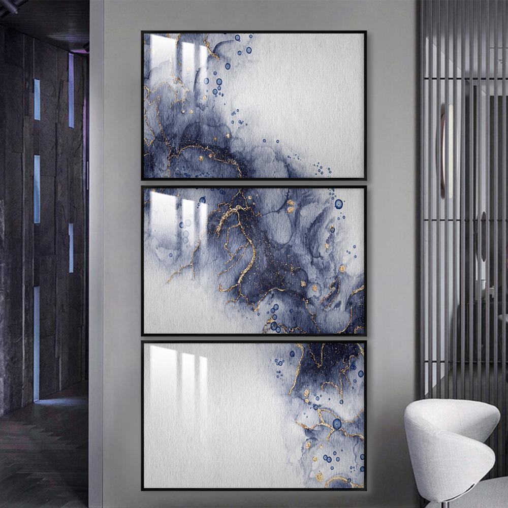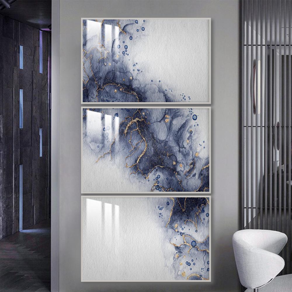 ثلاث لوحات جدارية بتصميم تجريدي مع برواز وطبقة اكريلك شفاف