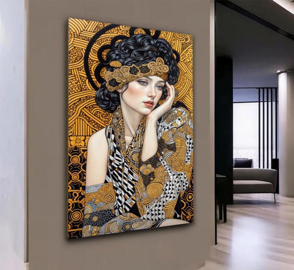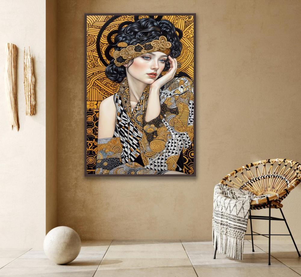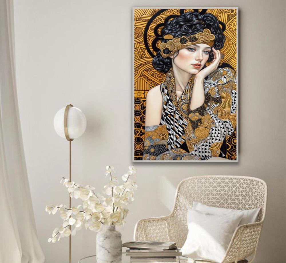 لوحة قماشية بتصميم بتصميم امرآة مع برواز مجوف