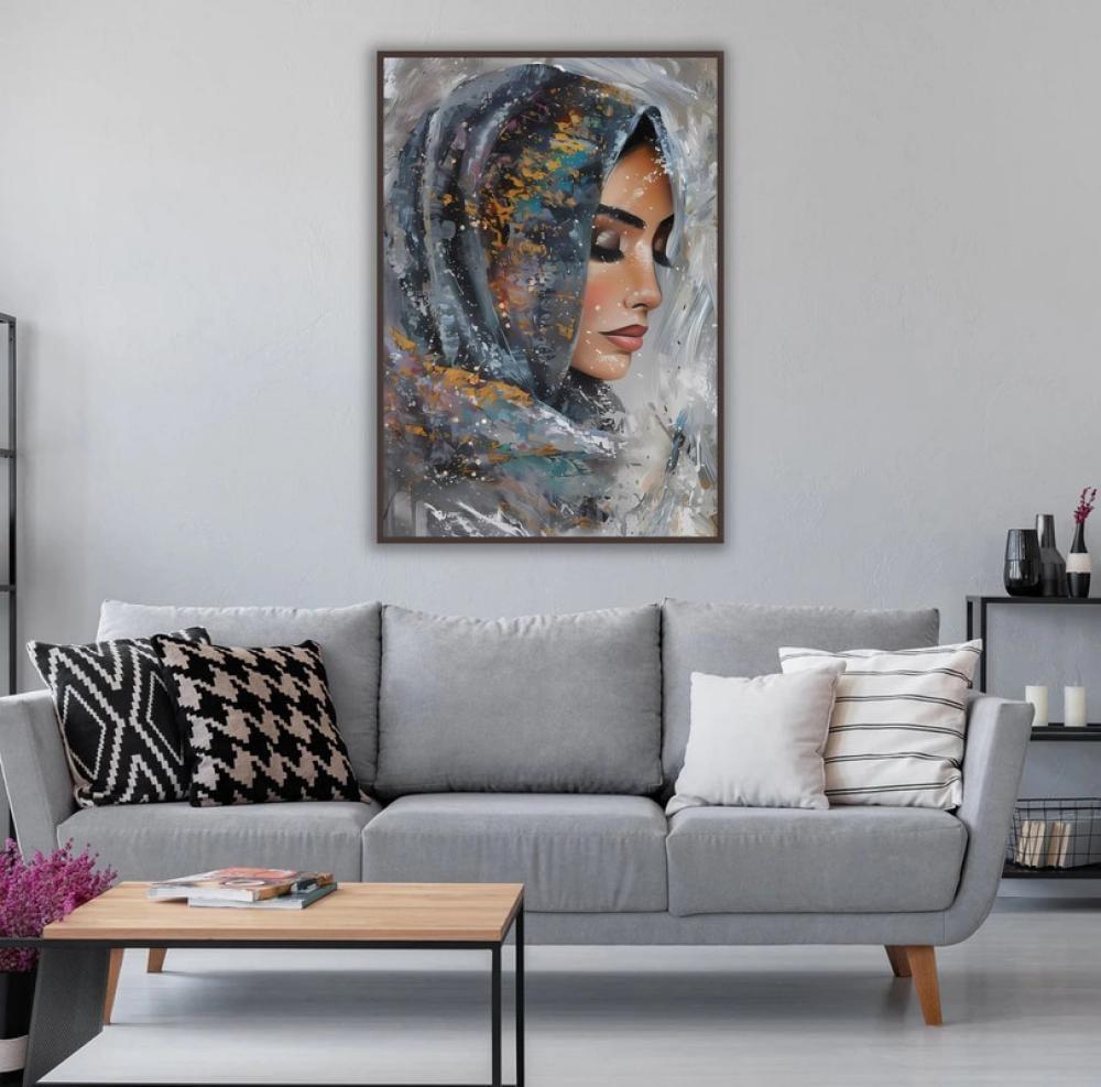 لوحة قماشية بتصميم الفن التجريدي بتصميم فتاة عربية